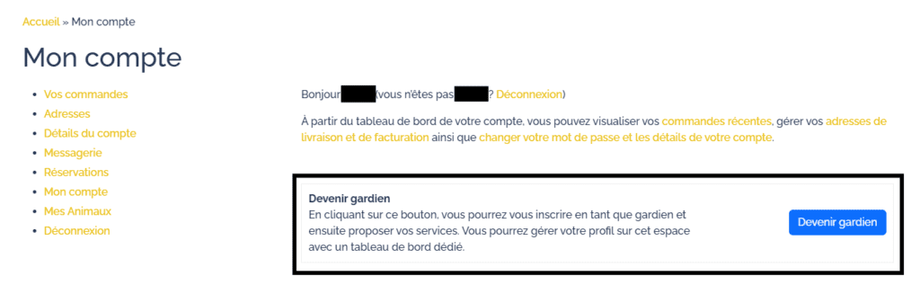• Une fois sur votre compte, cliquez sur [Devenir gardien].